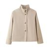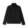 Kaslead New Women clothes Western Style Fashion Simple Stand Collar Breasted Short Loose Woolen Outerwear