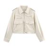 Kaslead New Women clothes Western Style Fashion Simple and Versatile Pocket Decoration Suede Jacket