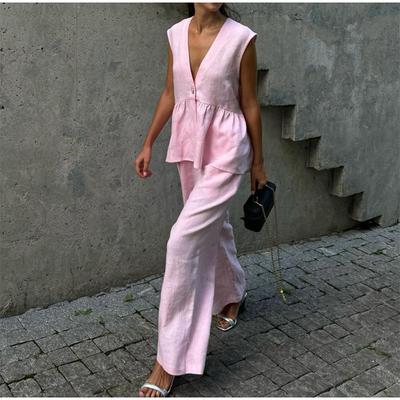 Summer New Product Women's Clothes French Style Casual Style V-neck Sleeveless Vest Vest Top + Elastic Pants Leg Casual Pants