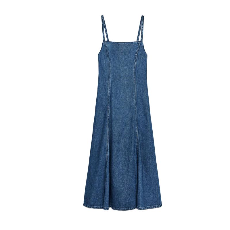 Spring and Summer New Women's Clothing French Simplicity Wind Long Denim Sling Straight Collar Midi Skirt Dress 8197082