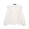 Kaslead New Arrival Women's Fashion Style Lace Laminated Decoration Elegant V-neck Long Sleeve Shirt 5029052