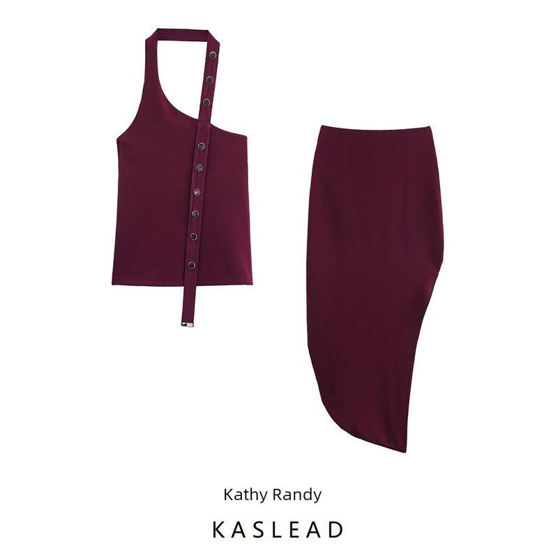 Kaslead New Women clothes Western Style Fashion Asymmetric Top Skirt 1198002 1198003