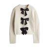 Spring New Women's Bows Shoelace Sweater Cardigan Plaid Soft round Neck Knitting Outwear 1255053