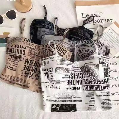 American vintage Letters Print Gyaru Red Tube Top Vest Women Summer Short Slimming With Chest Pad Outer Wear Top