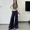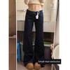 Small Dark Blue Denim Female Niche Design American Retro Loose Wide Leg Drape Straight Mopping Pants