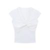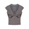 Kumikumi Sweet Gyaru Style Lace Stitching V-neck Short sleeve T-shirt Women Summer Slim fit Slimming Gray All-Match Top