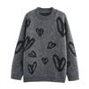 Kaslead New Arrival Women's Clothing Fashion Style Thickened Heart Jacquard round Neck Knitted Pullover Sweater