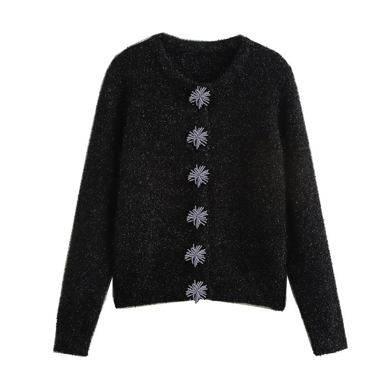 Kaslead New Arrival Women's Fashion Style Beaded Metal Wire Long Sleeves round Neck Knitting Cardigan 8146005