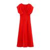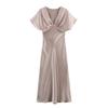 Kaslead New Arrival Women's Clothing Fashion Style Silk Satin Texture Elegant Short Sleeve Midi Skirt Dress 2330399