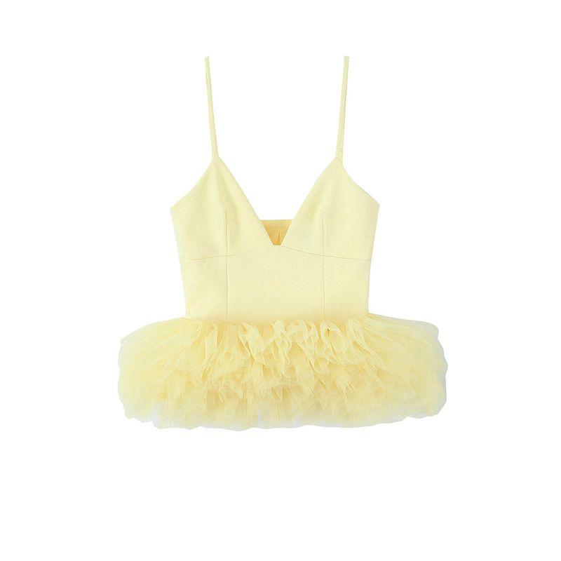 Kaslead New Arrival Women's Clothing Fashion Style Fashion Minimalist Puffy Hem Silk Net Stretch Tops 4772005