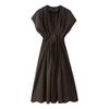 Kaslead New Women clothes Western Style Fashion Simple Slimming Pleated Waist Hugging Drop Shoulder Dress