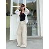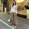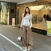 Small Khaki Wide Leg Denim Female Popular This Year American Retro High Waist Loose Straight-leg Mop Pants