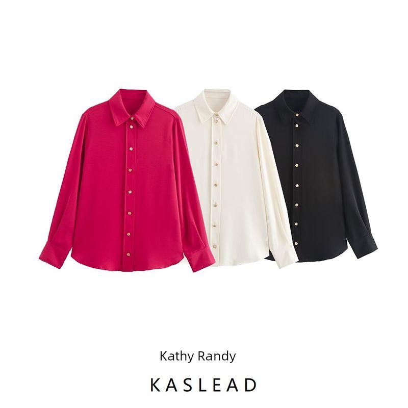 Kaslead New Arrival Women's Fashion Style Stylish Simple and Versatile Golden Breasted Drape Shirt 7969242