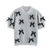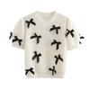 Spring New Women's Clothing Sweet Puff Sleeve Top Casual Easiest for Match round Neck Bowknot Short Sleeve Knitwear