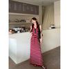 Kumikumi Pure Desire Style Stripe Lace-up Temperament Sling Dress Women Summer Waist Hugging Slimming A- line Skirt Long dress