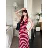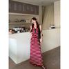 Kumikumi Holiday Style Set Stripe Cami Women Summer Slim fit Slimming Drawstring Skirt Two-piece Set
