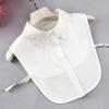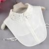 Mode Damen Chiffon Fake Kragen Strass Weiß Falscher Kragen Revers Abnehmbarer Knopf Halbes Hemd Bluse Oberteile