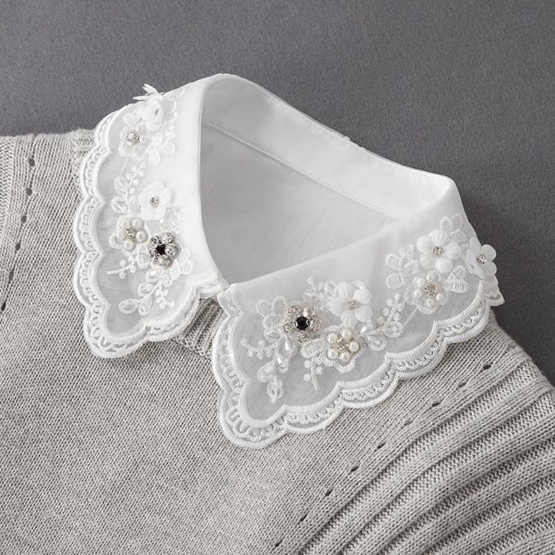 Handgefertigter Perlen Strass Abnehmbarer Kragen für Damen Halbhemd Falscher Kragen Dekoration Weißes Kleines Hemd mit Falschem Kragen