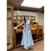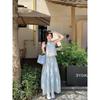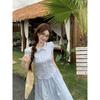 Kumikumi Sweet Set Younger Cute Doll Collar Shirts Women Summer Blue Stripe Skirt Two-piece Set