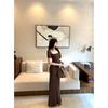 Kumikumi High-Grade Square Collar Knot Short sleeve Dress Women Summer Elegant All-Match Slimming Hip Skirt Long dress