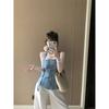 Kumikumi Gyaru Wind Heavy Industry Hot Drilling Denim Tube Top Vest Women Summer Retro Distressed Ribbon Waist Hugging Top