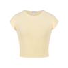 American Style Sexy Pure Desire Style round Neck Shoulder Short Sleeve T-shirt Female Summer Apricot Silm Slim Looking Short Midriff-Baring Top