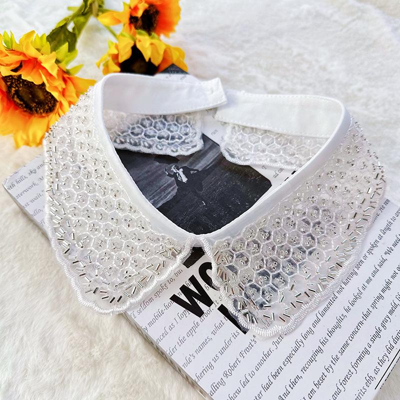 Eugen Garn Bestickter Schwarz-Weißer Falscher Kragen Spitzenkragen Hemdkragen Damen Vielseitiger Pullover Perlenbesetzter Dekorativer Kragen