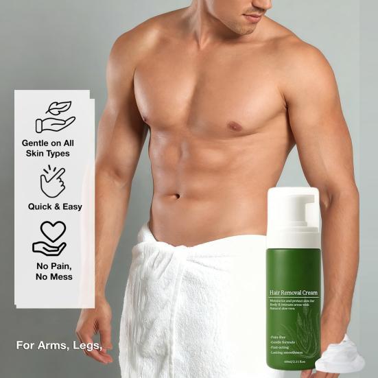 Erleben Sie schnelle und effiziente Haarentfernung mit unserer Haarentfernungscreme für Männer. Diese nicht klebende Formel reinigt Ihr Haar sanft in Minuten, perfekt für Menschen mit einem geschäftigen Lebensstil.. Angereichert mit natürlichen Inhaltsstoffen wie Aloe Vera, Kokosöl und Avocado, entfernt diese Creme nicht nur Haare, sondern beruhigt und spendet Ihrer Haut auch Feuchtigkeit und hinterlässt sie weich und gepflegt..