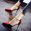 Rotsohlige High Heels, sexy Satin Ein-Wort-Schnalle spitze Strasssteine, rot 2025 Frühling Stiletto Kleid Damen Einzelschuhe