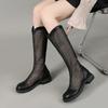 Sommer Damenstiefel 2025 neue Netzstiefel hohle coole Stiefel Meshgarn vielseitig atmungsaktiv dünne lange Stiefel dicker Absatz hohe Stiefel
