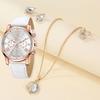 Fashionable Women's Watch with Simple Roman Dial, Quartz Watch, Women's Leather Strap Watch Necklace Earrings Ring Set