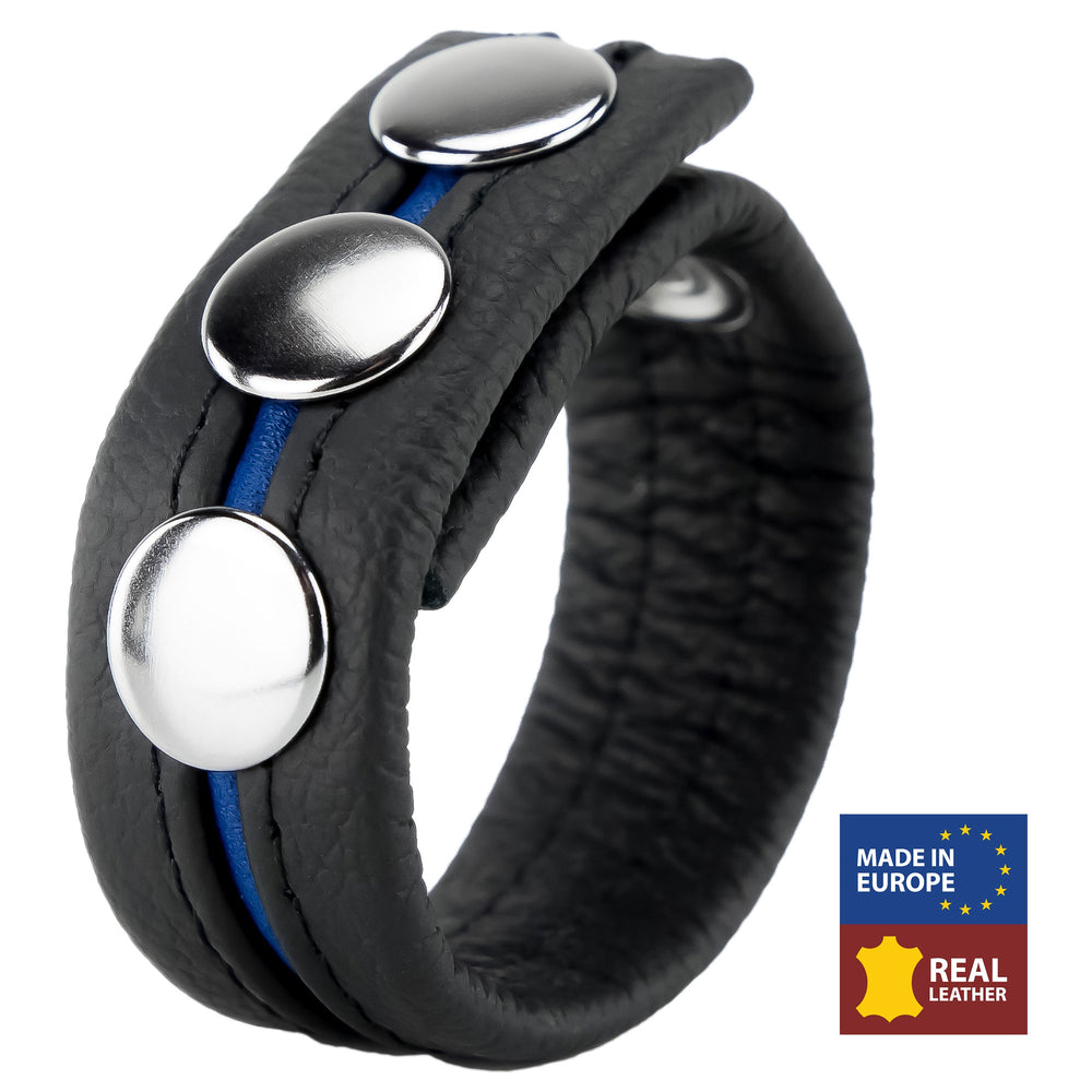 Cockring en cuir 3 Pressions Noir-Bleu - The Red - Cockrings Cuirs