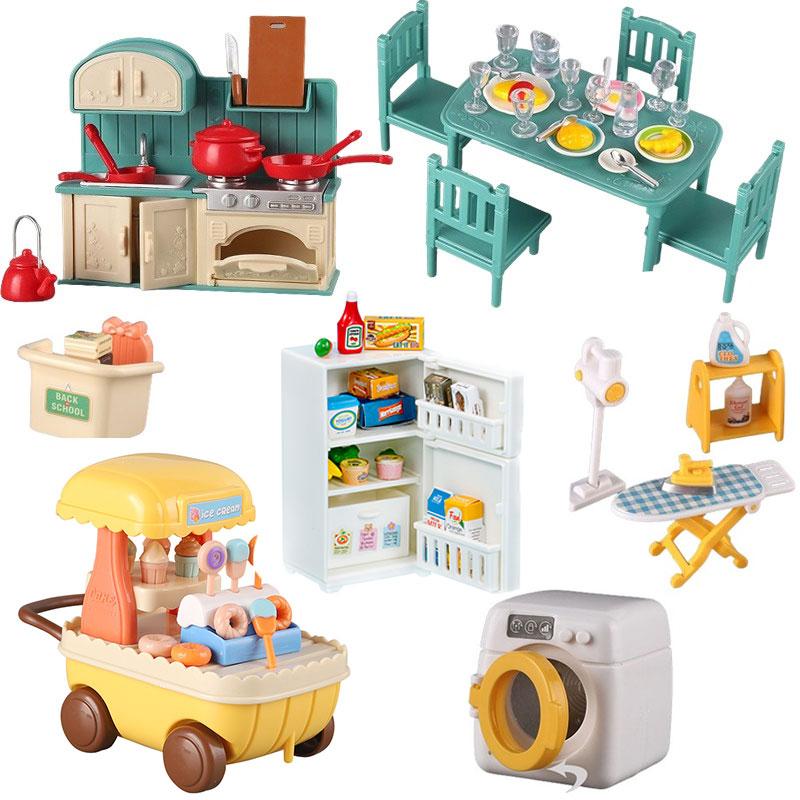 Dollhouse Furniture Set Doll house Bathroom/Kitchen/Fridge/Washing Machine Laundry Kids Doll House Miniature Pretend Play Toys