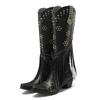 Western Cowboy Fransen Kniehohe Stiefel für Damen Gold Rot Schlangenleder High Heels Verzerrte Spitze Nieten Cowgirl Reißverschluss Lange Stiefel