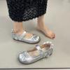 Silberne Ballerinas Damen 2025 Sommer und Herbst neue Schleife Mary Jane Einzelschuhe Französische leichte Mund kleine Lederschuhe