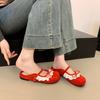 Retro Spitzen Mary Jane Schuhe Damen Frühling und Sommer neu Temperament flacher Ausschnitt halber Slipper mit Rock Tide