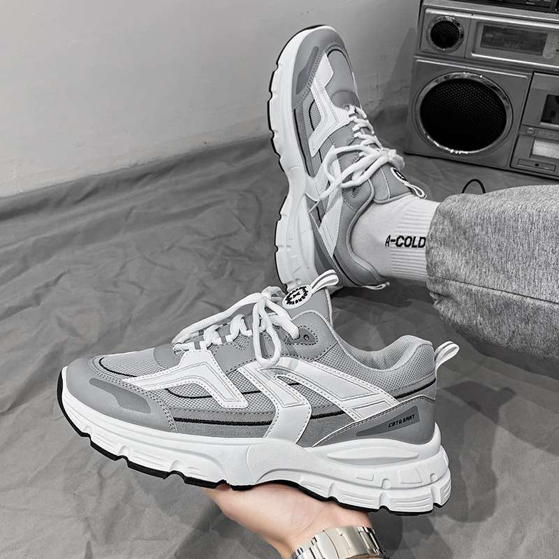 Herrenschuhe sind atmungsaktiv und vielseitig im Sommer, lässige Studenten Lauf-Sportschuhe, dicksohlige Erhöhung, kleine weiße Papa Hongkong