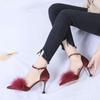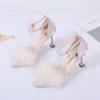 Einwort-Schnallensandalen Damen Frühling und Sommer Fransen Fluffy Schuhe Spitzkatzenabsatz High Heels Leichte Mundweite Mittelhoher Absatz Stiletto Einzelne Schuhe
