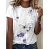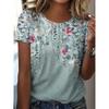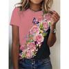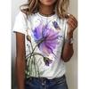 Summer Round Neck Women's T-shirt Fashionable 3D Flower Print Short Sleeved Casual Top Y Street Women's Clothing