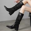Riesige gutaussehende Retro-Langstiefel, hohe Stiefel, plissierte Stiefel zum Stapeln, neue spitze dünne dicke Absatz-Reitstiefel für Damen