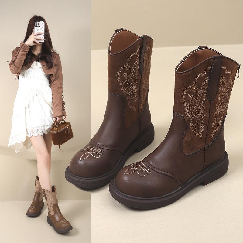 Kurzstiefel Damen Retro Bestickte Western Cowboy Stiefel Reißverschluss hinten Herbst und Winter Neue Ritterstiefel Martin Stiefel