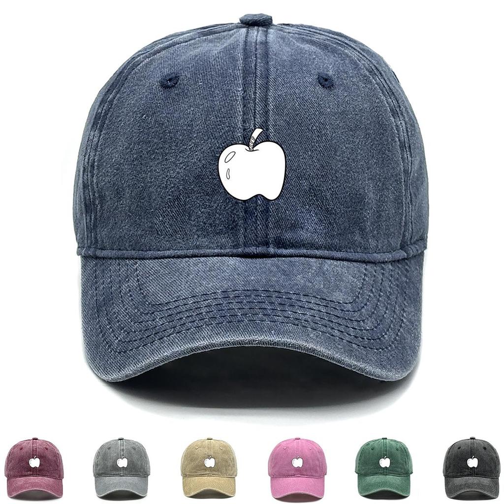 Weiße Apfel-Print Snapback Baseballkappe, Frucht-Netz-Kappe Verstellbarer Riemen Kopfbedeckung Used-Look Retro Verstellbare Baseballkappe