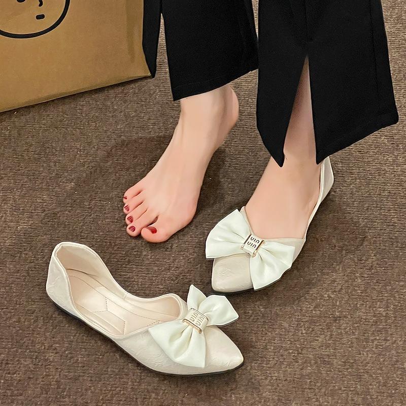 Flache spitze Einzelschuhe Damen Sommer neu Schleife weiche Sohle temperamentvolle Schuhe hohle Sandalen