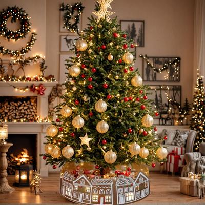 26/28-Zoll LED Lebkuchen Weihnachtsbaumkragen Weihnachtsbaumdecke mit Lichterkette Weihnachten Künstlich