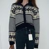 Autumn and winter new casual lazy wind contrasting color jacquard zipper sweater thick coat for women