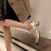 Xiaoxiangfeng Lackleder Blockabsatz Ein-Wort-Schnalle Mary Jane Damenschuhe 2025 Frühling neu Strass Perle Silber High Heels