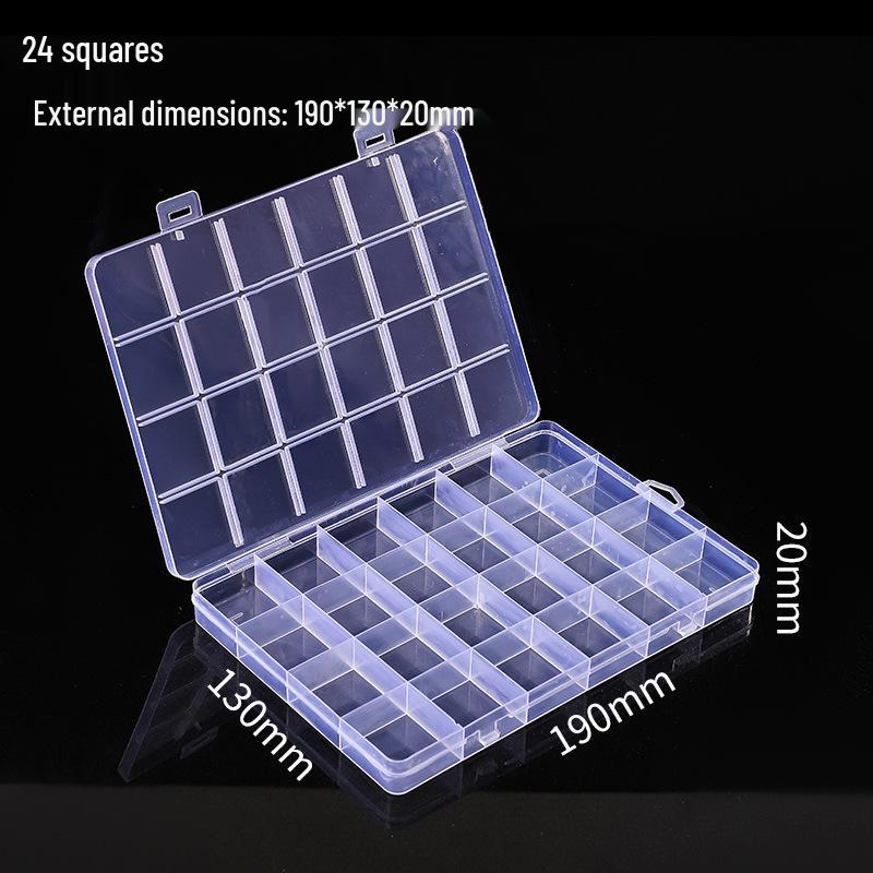 Aufbewahrungsbox aus transparentem Kunststoff mit 24 Fächern für Nailart, Strasssteine, Perlen und Schmuckzubehör