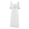 European and American Ladies Dress White Socialite Style Square-Neck Cinched Long Dress Fresh Fairy Dress 2025 Summer New Arrival