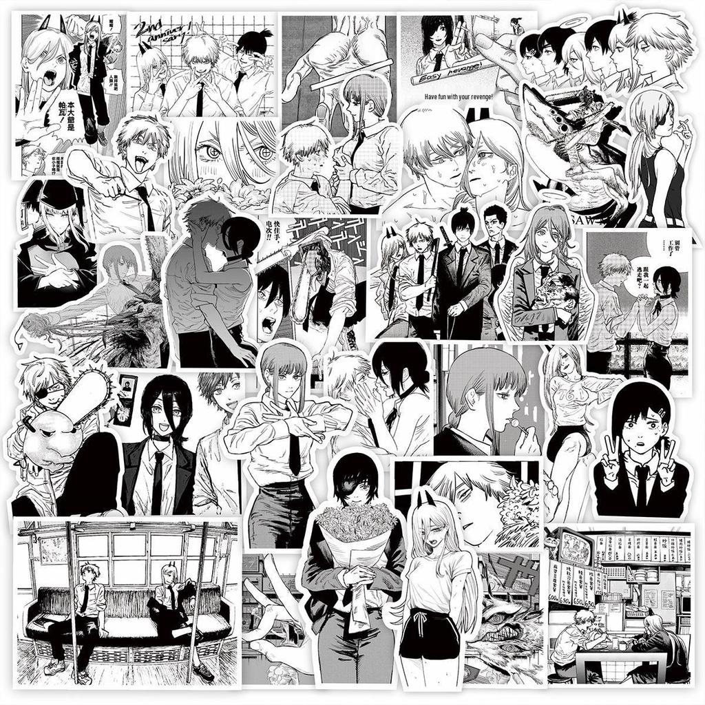 Chainsaw Man Manga Aufkleber: Denji, Power, Makima Schwarzweiß Journal Set