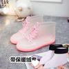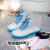 Transparente niedliche kurze Regenschuhe für Erwachsene Damen Wasserdichte Schuhe Rutschfeste Gummischuhe Überschuhe Koreanische Mode Models tragen Regenstiefel Herbst